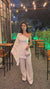 Macacão longo em tecido leve e fluido. O modelo possui decote em “V” transpassado com detalhe drapeado lateral e aplicação de fivela fixa decorativo. A calça é ampla e reta, proporcionando movimento e elegância. As alças são finas e cruzadas nas costas, trazendo sofisticação...- R$ 698