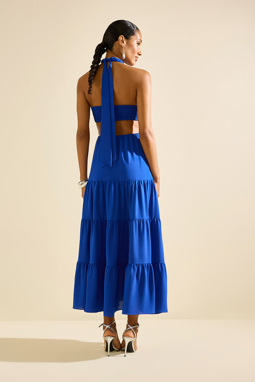 Exuberante e moderno, este vestido longo em tom vibrante é a escolha perfeita para eventos que pedem um visual ousado e elegante. Seu design conta com top estilo frente única com decote torcido no busto e recortes laterais que valorizam a silhueta. A parte superior tem amarração no pescoço e costas com lastex, garantindo melhor ajuste ao corpo. A saia longa é fluida e composta por camadas em babados amplos, criando movimento e leveza ao andar. O tecido leve proporciona caimento impecável e conforto ao vestir. Ideal para ocasiões especiais como festas, jantares ao ar livre ou eventos tropicais.